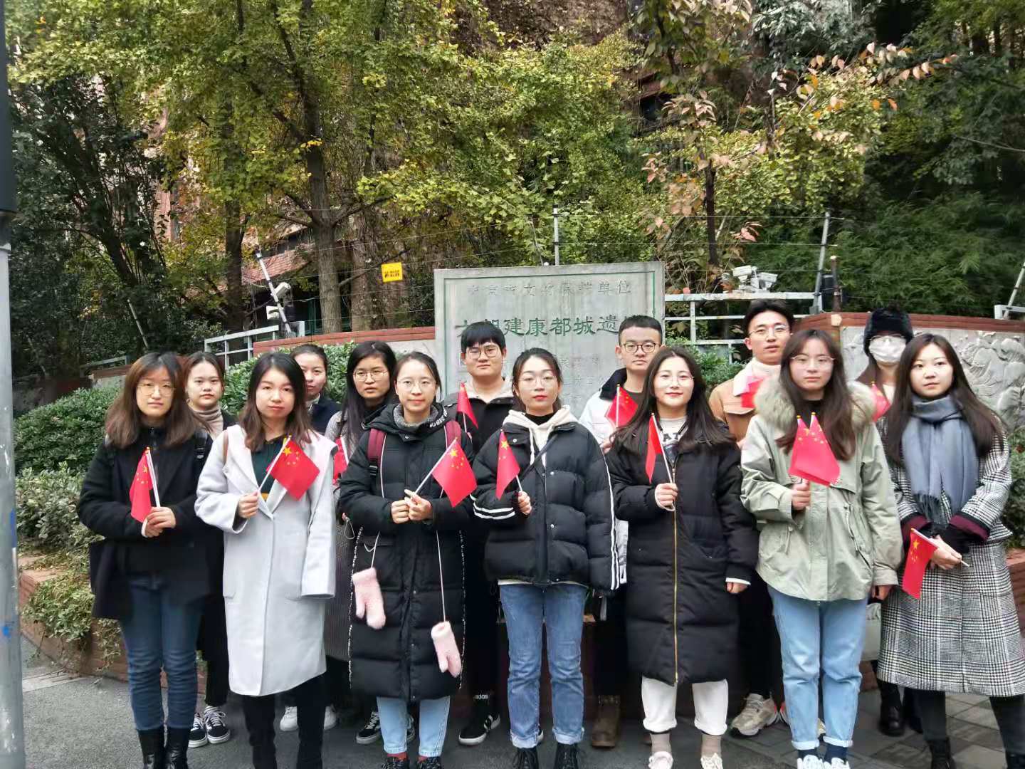 研究生一支部并二支部共56名同学参与了此次活动。同学们下午13:00时在图书馆门前集合,而后分成四队,前往南京解放革命斗争遗址、六朝建康古都遗址、南京民间抗日战争博物馆、雨花台烈士陵园四个红色旅游景点进行参观。知识竞赛于晚18:30-20:00在德经楼307开展,三支参赛队伍由研究生两党支部推选代表组建而成。本次“四史”主题知识竞赛共分为小组必答题、小组抢答题和风险抢答题三个环节,以积分制的形式逐出名次。党员同学们一个个你追我赶、不甘示弱,对党史、新中国史、改革开放史、社会主义发展史都有较好的理解和掌握,场上竞争十分激烈,三队同学分别获得卓越青年奖、精神文明奖、思想进步奖。活动最后进行了各队的颁奖和合影环节。
