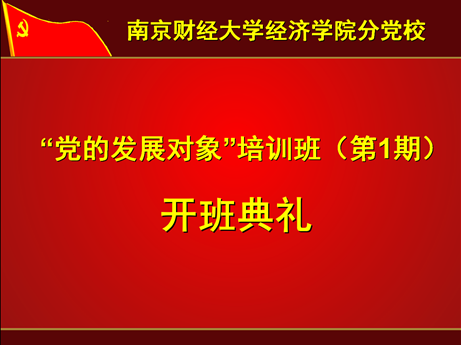 分党校第一期“党的发展对象培训班”,54名本科生、19名研究生共73名入党积极分子参加了本期培训,学院党委书记胡荣华教授出席开班典礼,开班典礼由学生党支部书记徐山昌主持。