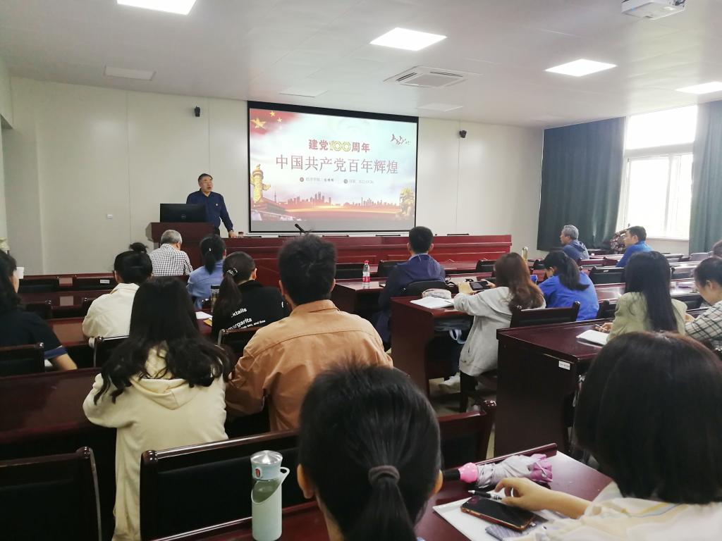 307会议室讲授题为“中国共产党百年辉煌”的专题党课。统计系教工党支部,教务处党支部、花都影视