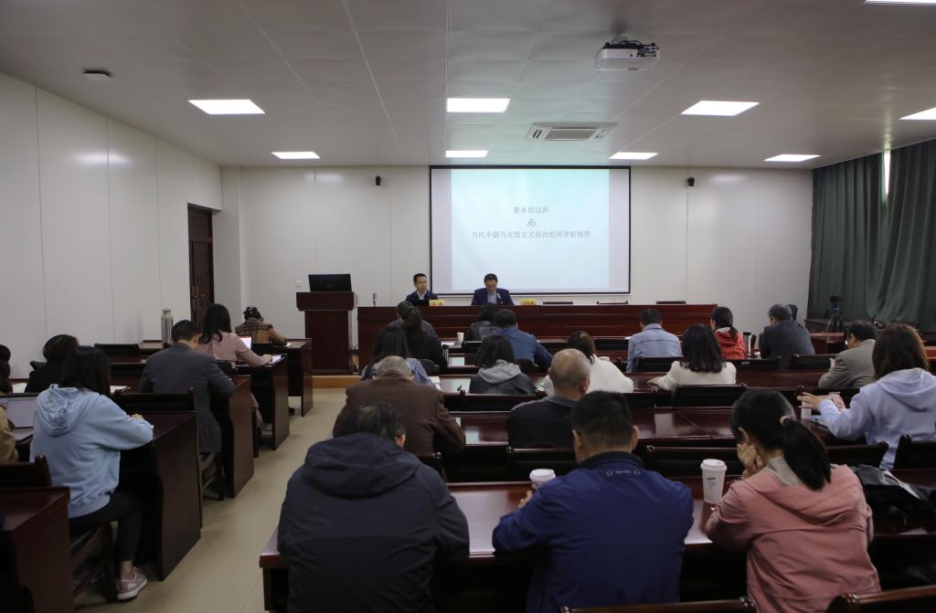 412日下午,花都影视 联合校党委宣传部、学校教师(教学)发展中心在德经楼307会议室共同举办题为“资本的边界与当代中国马克思主义政治经济学新境界”的专题报告会。报告会由校党委常委、党委宣传部部长石奇主讲。报告会由院长朱红根主持。党委宣传部、图书馆、花都影视 等相关部门工作人员和教师代表到场聆听报告。