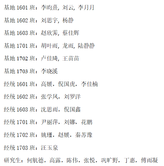以下同学为团组织向党组织推荐的党的发展对象人选。为了广泛听取群众意见,接受群众的监督,现予以公示。