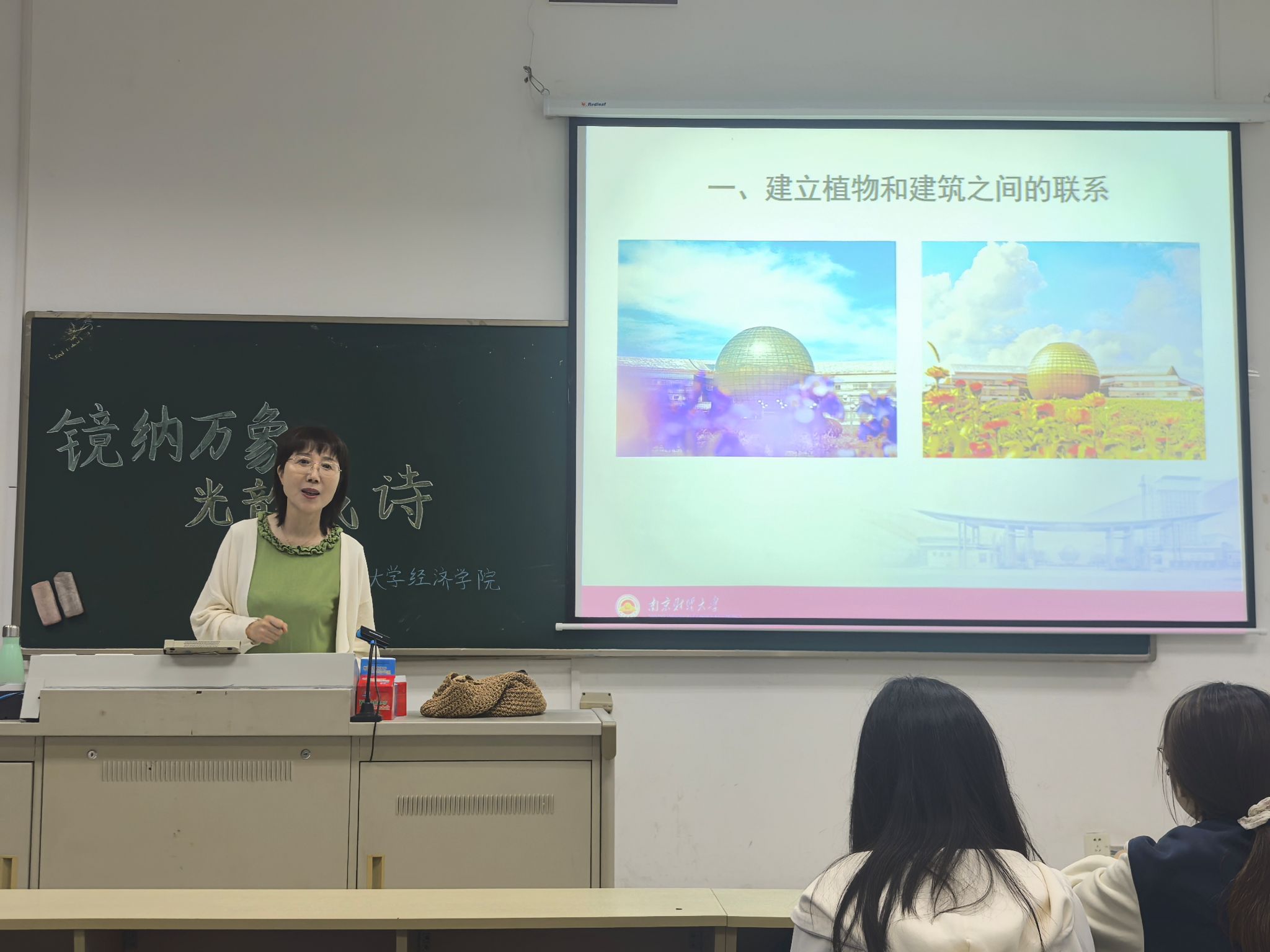 随后,卢映西老师深入浅出地讲解了四点校园摄影的构图技巧。首先,卢老师指出要善于建立植物与建筑之间的联系,通过将植物作为前景,可以与建筑主体形成虚实相生的画面效果,不仅打破了单拍建筑摄影的单调感,更赋予作品丰富的层次与意境。同时,卢老师提醒同学们,天气是摄影中不可控却又至关重要的元素,摄影的魅力正源于这份不确定性,鼓励大家以敏锐的观察力捕捉转瞬即逝的光影之美。