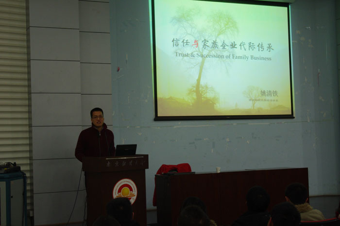 “未来之路”学术讲坛第二期在专一报告厅成功举办。本期主题为“信任与家族企业代际传承”,主讲嘉宾为花都影视
