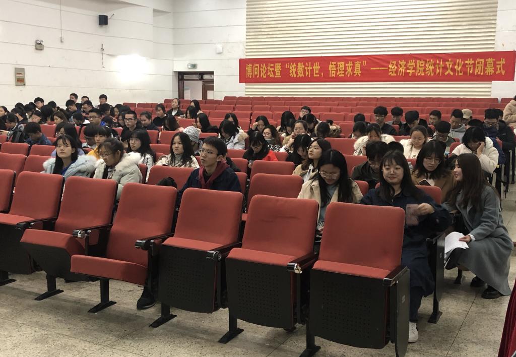 于德经楼报告厅举办了统计文化节闭幕式。此次闭幕式我们邀请了统计文化节的创始人周朋朋老师给大家做讲座,在场的同学均有所获益。