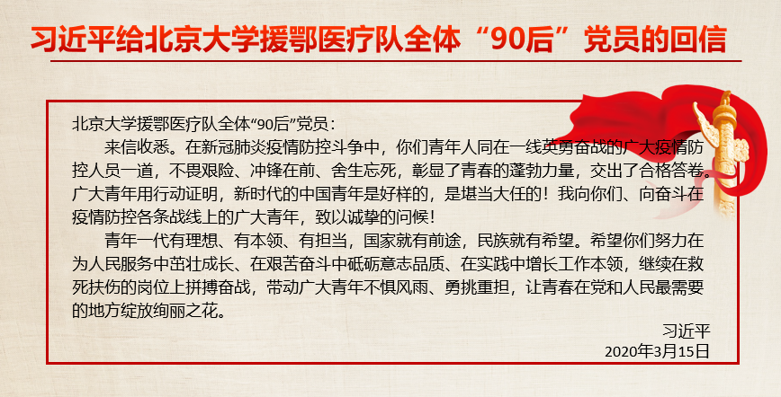 为引导青年学生深入学习领会习近平总书记给北京大学援鄂医疗队全体“90后”党员的回信精神,3月25日,院党委副书记袁怡琨通过腾讯会议为花都影视