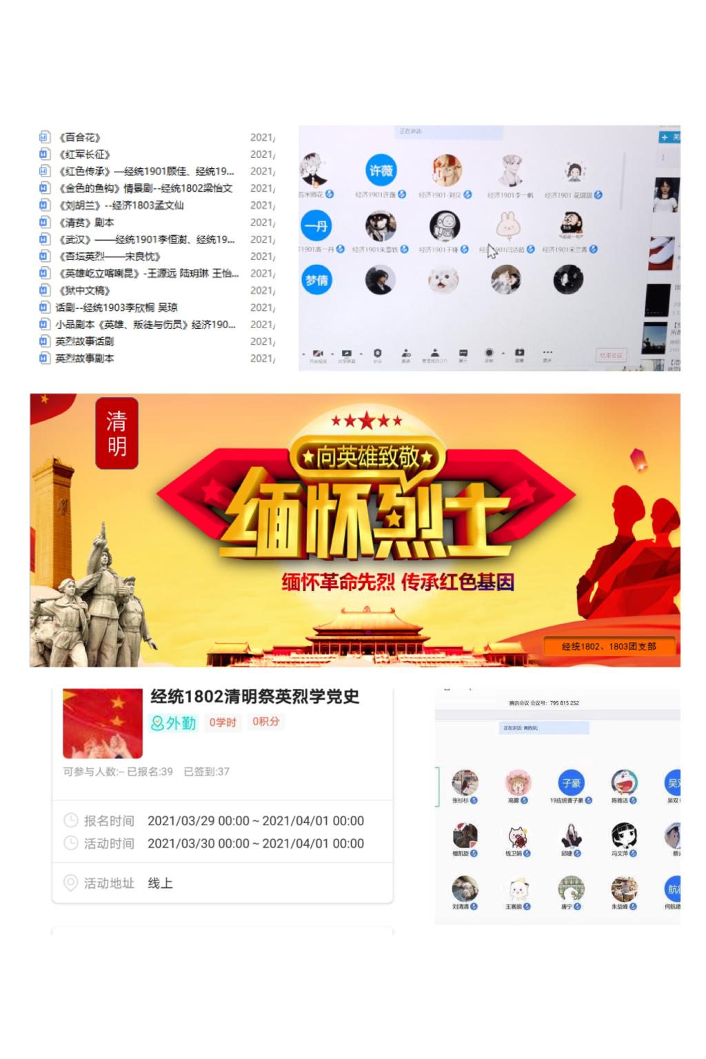 开展了“缅怀革命先烈,传承红色基因”清明主题教育系列活动,通过线上学习、主题党团日、网上祭英烈、征集红色革命故事剧本、话剧表演等形式,让学生在活动中受教育、在力行中担使命。