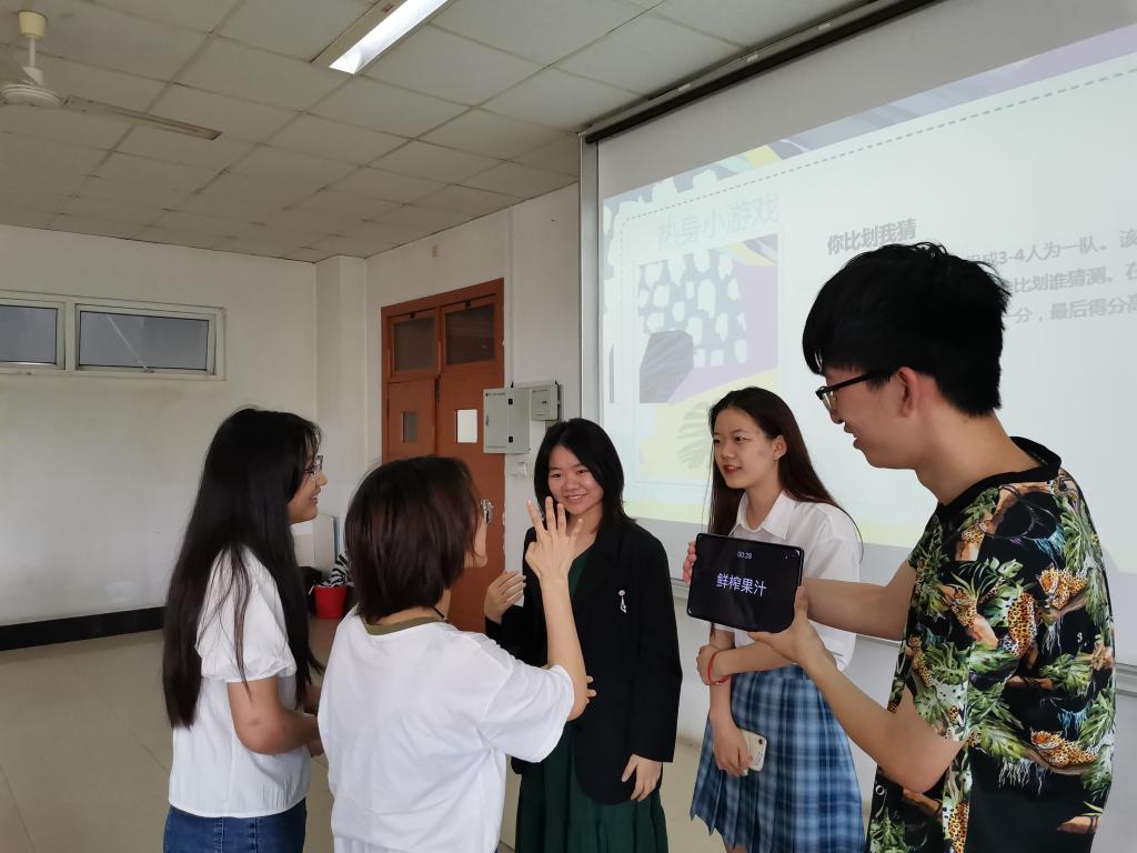 接着,班会借助“画画传递猜词”的游戏进一步加深了大寝同学之前的默契。欢笑声一时达到了高潮,现场氛围被充分调动,同学们参与热情高涨,最终以5.73秒答对的所画词语的一组取得了的胜利。