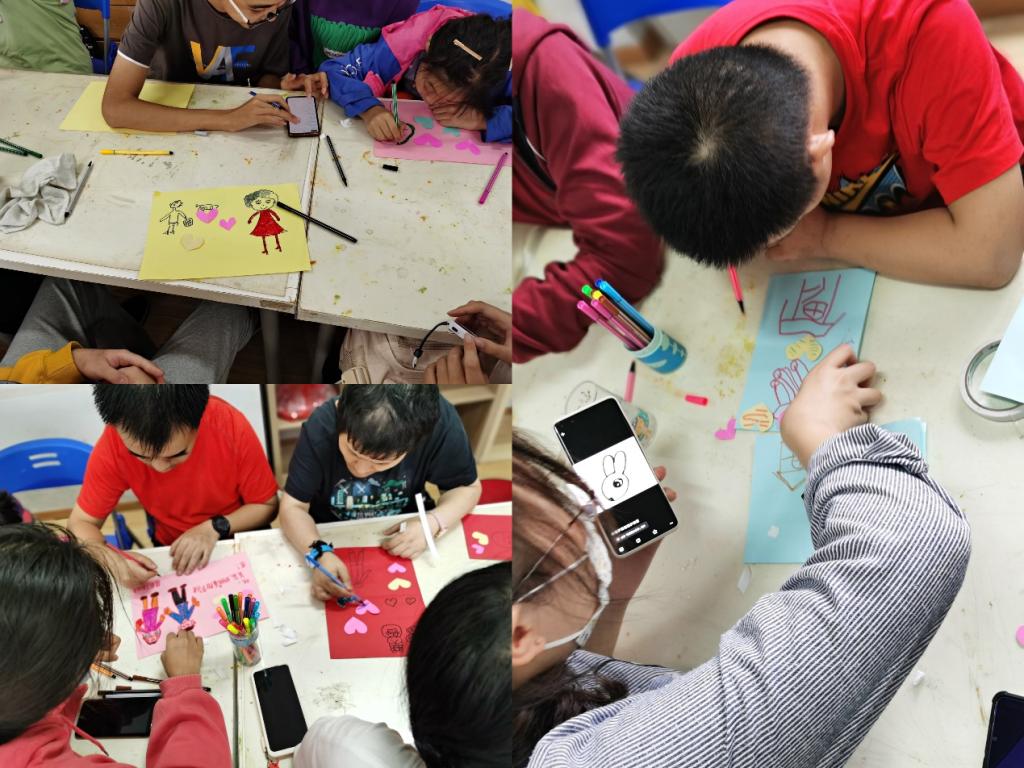 最后,主持人给每个人发放了硬卡纸与爱心纸片来制作重阳贺卡。贺卡上,有人写下感恩语祝福自己的父母长辈,有人绘出丰收的硕果以期未来……学员们认真画出心中所想,以贺卡寄托他们对长辈的感念和对生活的热爱。