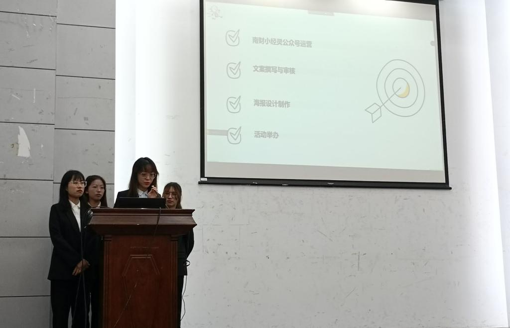 学生会于德经楼二楼报告厅召开第十九届学生会终期述职答辩大会。受疫情影响,本次述职大会以线上线下相结合的方式开展。出席本次活动的嘉宾有校学生会主席靳千一、财政与税务学院学生会主席戎露雪、艺术设计学院学生会主席张越、公共管理学院学生会主席汪佑子、营销与物流管理学院学生会主席李思雨、花都影视