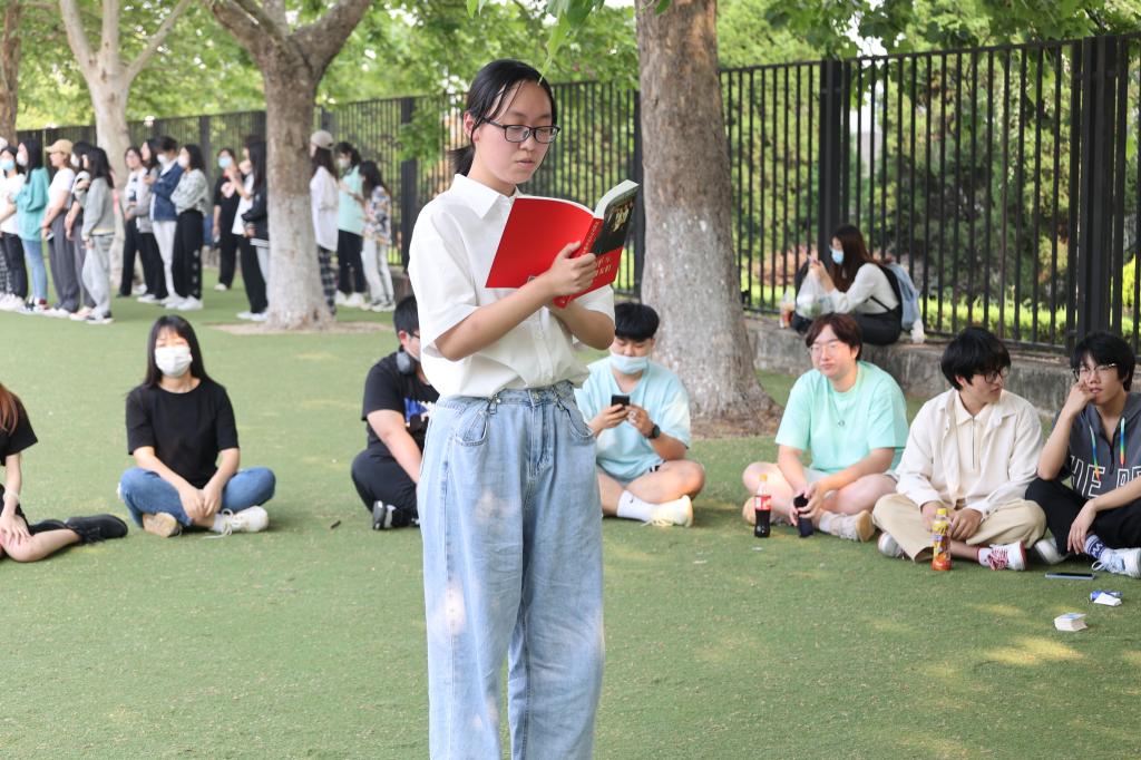 2102班的汪琰同学领读到“同学们到基层去,到边远地区去,到社区去,到农村去,到军营去!……”时,她停下来,神色动容地与同学们分享自己参加返家乡社会实践活动,做驻村大学生时为村民排忧解难的经历,鼓励同学们积极参与社会实践活动,以此来长才干、强本领。她强调:我们青年学子既要积极开动脑筋,攻坚克难,开拓全新领域,更要沉心静气,有把冷板凳捂热的勇气和能力。同学们被书中的精神感动,纷纷检视自身,表示将以时代责任为己任,为实现第二个奋斗百年目标贡献自己的青春力量。