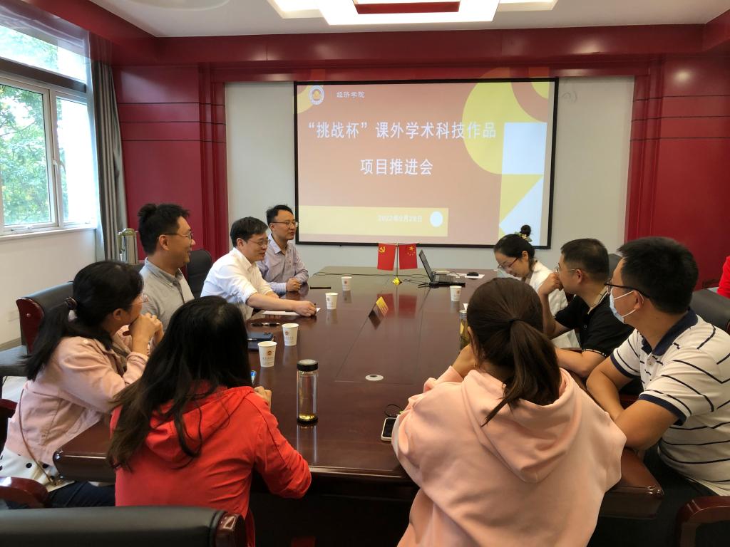 邀请南京师范大学李金生教授来院作“大挑”培育项目指导。校团委书记徐刚、校团委副书记尹梦雨、学院党委副书记袁怡琨、学院“大挑”培育项目指导老师及主要成员参加会议。会议由学院党委副书记袁怡琨主持。