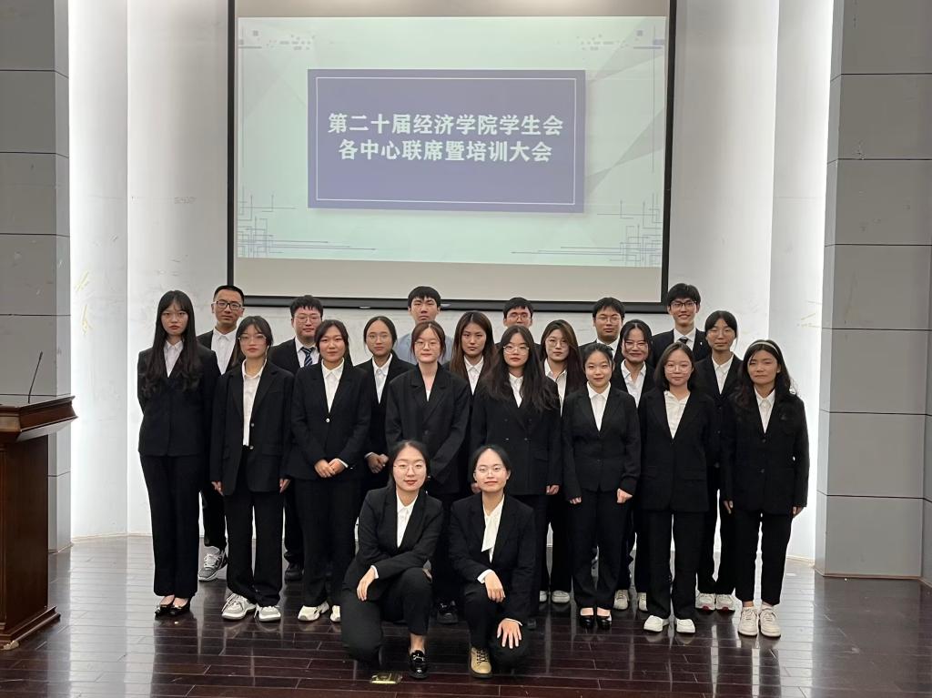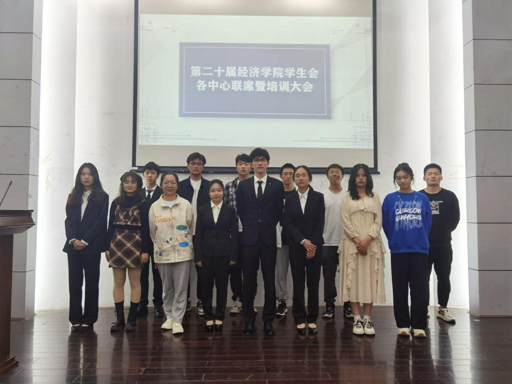 学生会各中心联席暨培训大会在德经楼二楼报告厅顺利召开。学院学生会主席、各中心部长以及全体新志愿者们参加了本次大会。会议由综合事务中心张育绮、李云峰两位同学主持。