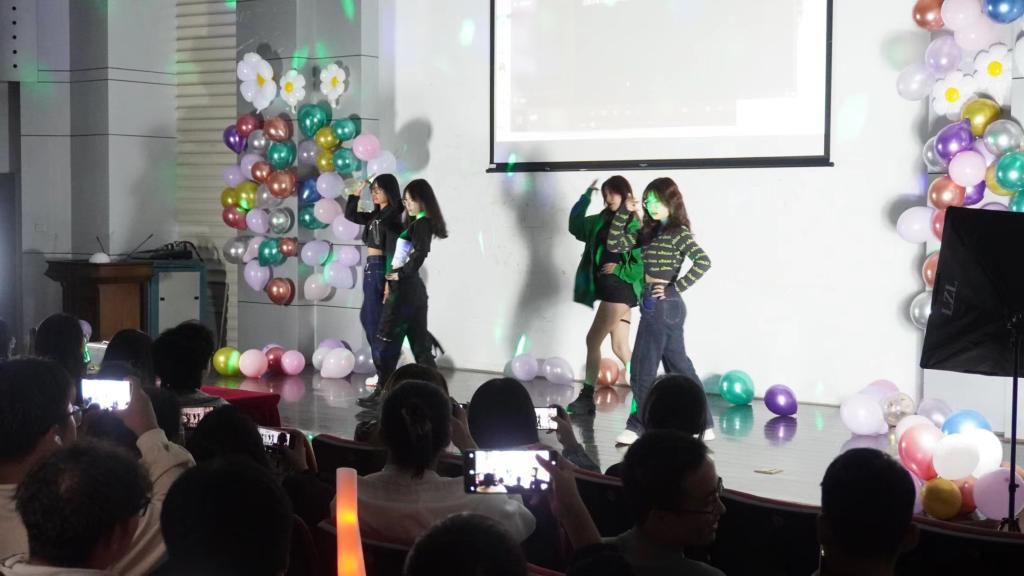 “此曲只应天上有,人间能得几回闻。”在第二篇章中,邓俊杰、李丹丹、陈小曼、金霖、钱骏豪五位同学各挥所长,演唱自己擅长的歌曲,为大家带来了一场听觉盛宴。服务维权中心的合唱也同样令人记忆犹新。在第三篇章中,由张南阳、毛颖杰、张坤、邓旺祥四位同学带来的吉他弹唱《海阔天空》可谓是“余音绕梁三日犹未尽”,赢得了众多同学的喜爱。梁欣怡同学登上舞台,表演独舞《pink venom》,张佳丽、邵雨轩、张与溦同学的《遇见》紧随其后。综合事务中心的《配音乱炖》引来同学们阵阵笑声,对外交流中心的唱跳rap更是让人耳目一新。而间或穿插在整场晚会的三轮抽奖环节与游戏互动环节,更是拉近了观众与晚会的距离,让人沉醉其中、尽享欢乐。