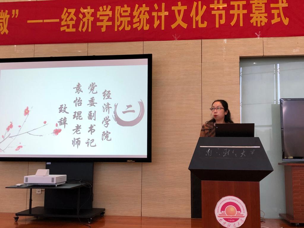活动伊始,学院党委副书记袁怡琨老师致开幕词。她以当代大数据时代为背景,从统计学的重要性、统计科学的划时代意义,和花都影视