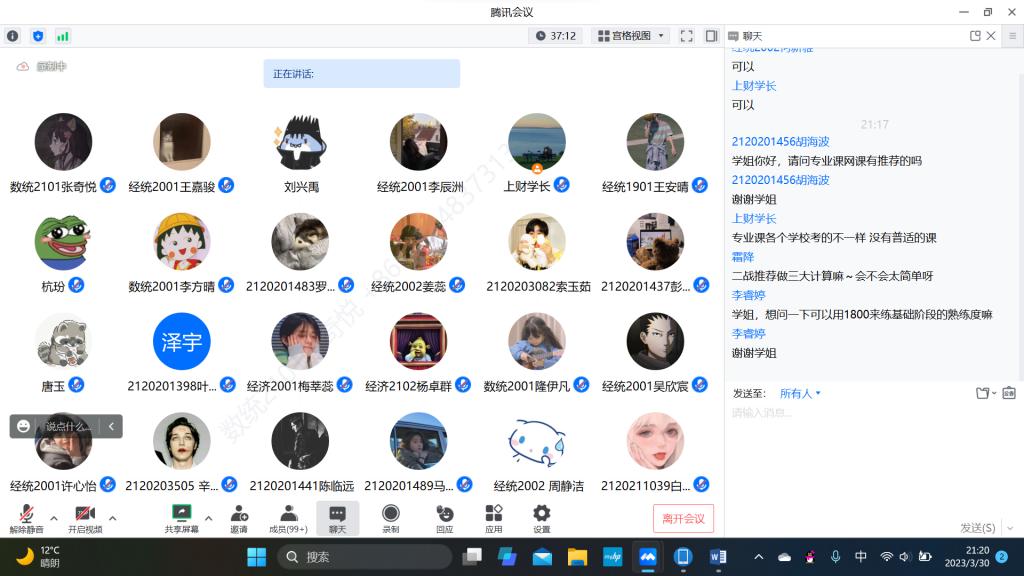 召开就创月指导系列活动之2023年考研经验线上分享会。分享会邀请了王安晴、杭玢同学进行第一轮考研经验分享,2020级全体同学参加了分享会。