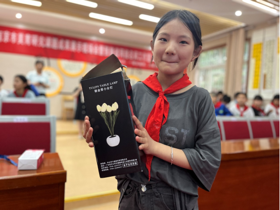的志愿者们来到南京化纤新村小学,带去为孩子们实现的“心愿”。孩子们蹦蹦跳跳地进入教室,好奇地四下张望,然后坐到自己的座位上,眼中带着期待与激动,等待着从志愿者哥哥姐姐手中接过自己那份微心愿礼物。当被叫到姓名时,小朋友激动地跑上前来,向志愿者真诚道谢,脸上挂着发自内心的幸福笑容,现场洋溢着欢声笑语。最后,花都影视