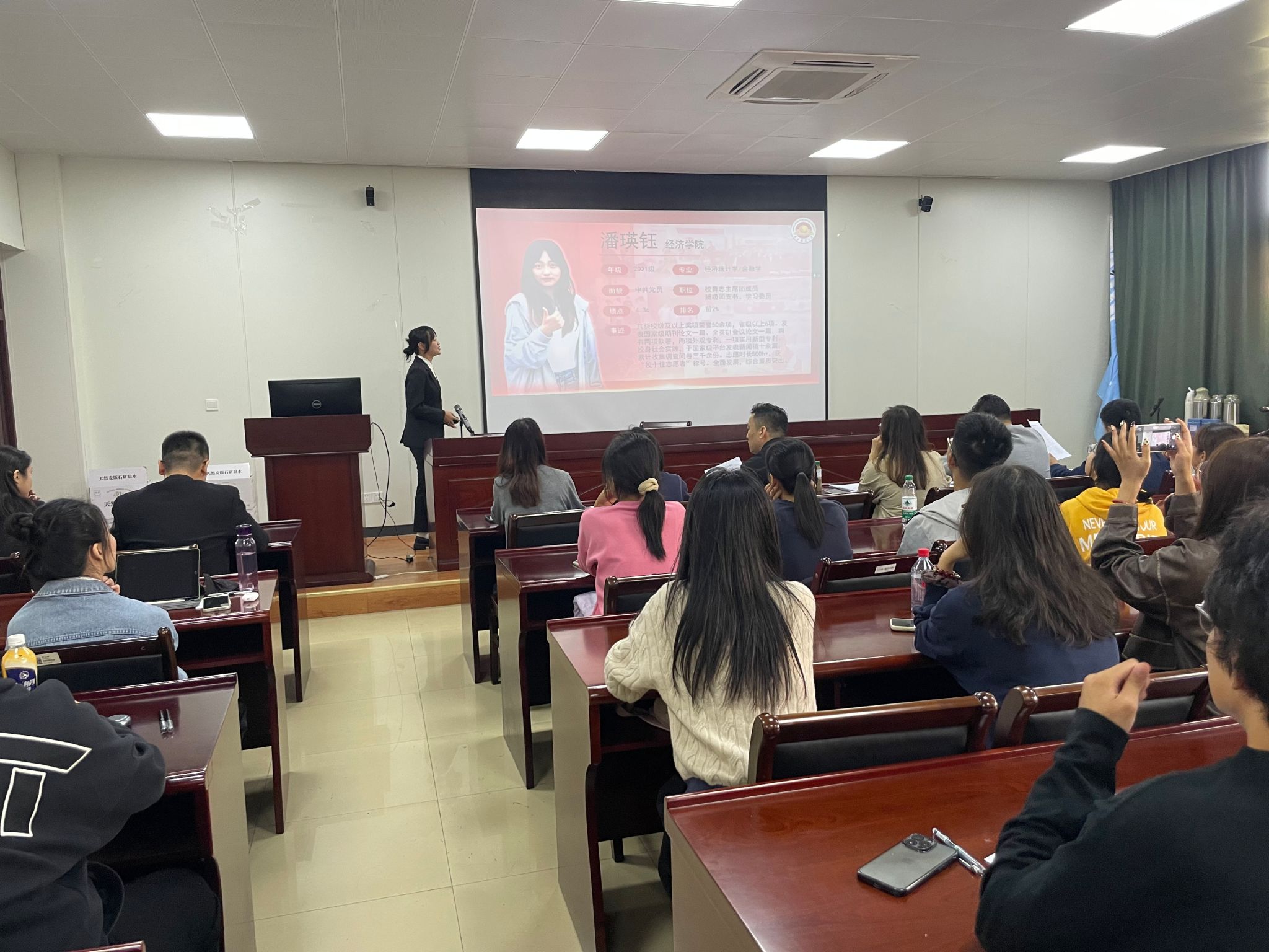 在德经楼307会议室开展了2023-2024学年国家奖学金答辩评审会。学院党委副书记贾亦璞,经济系系主任陈博欧,辅导员黄晓娟、徐昊翔、巩世广和潘怡7位老师担任评委,共有12名学生参加了答辩会,学院2024级新生到场观摩学习。答辩会由学工办主任梁少颖老师主持。