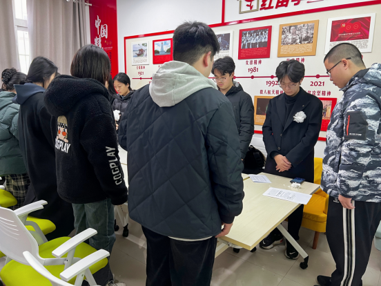 于“红苗学堂”一站式学生社区开展“铭记苦难历史,汲取前行力量”国家公祭日纪念活动,学院政治辅导员、党委副书记贾亦璞,党支部书记黄晓娟、梁少颖,团委书记潘怡,部分预备党员及团委副书记参加此次活动。
