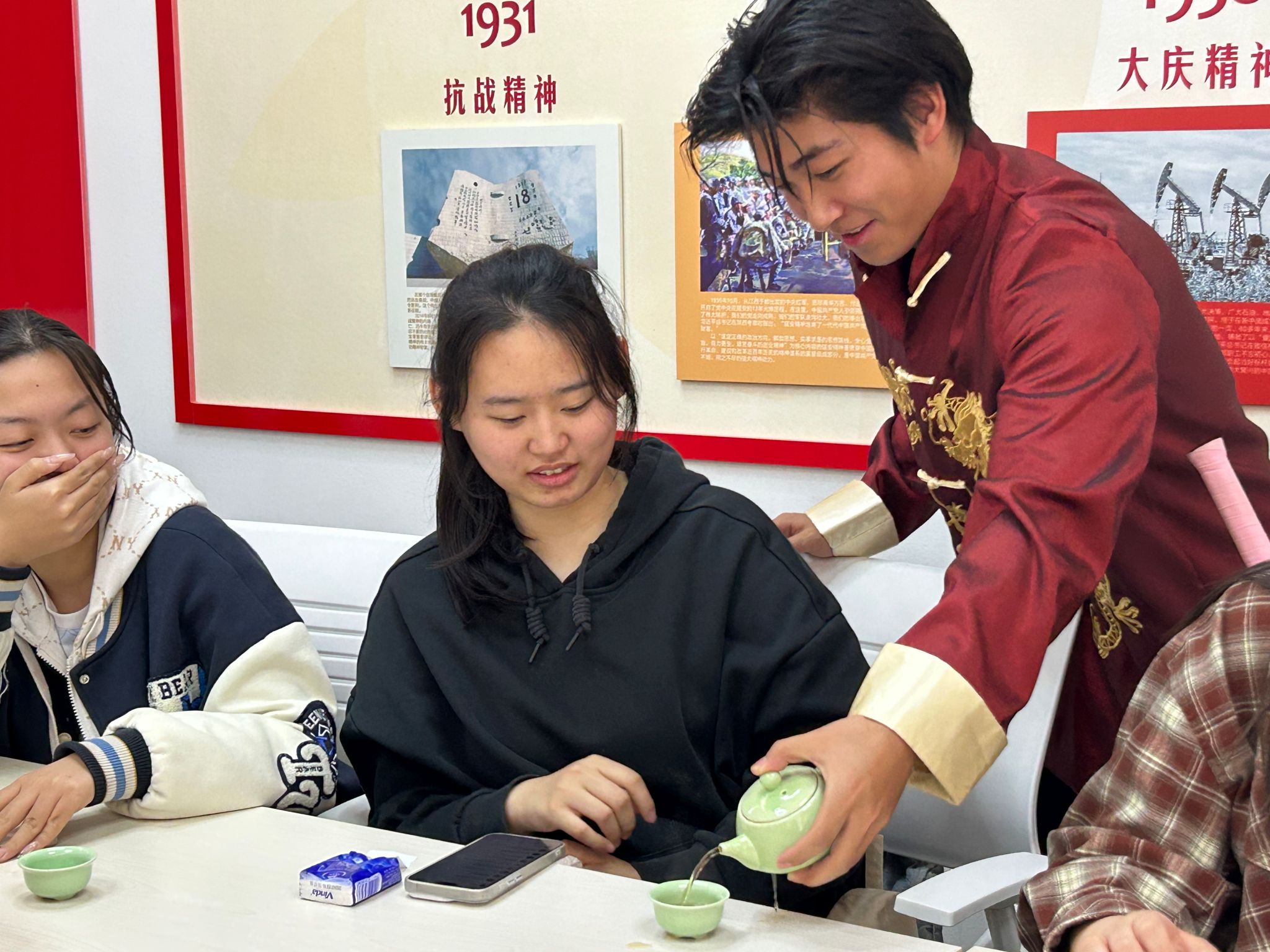 活动开始前,学生会成员们早早来到活动现场进行布置,摆放好精致的茶具和品类丰富的茶叶。随着参与同学陆续到来,活动在轻松愉快的氛围中拉开帷幕。主持人深入浅出地讲述了茶文化与中华优秀传统文化的深厚渊源,为此次活动奠定了浓郁的文化基调。随后,同学们亲操茶器,在注水、冲泡、出汤之间,探寻茶叶的种类、产地与制作工艺的奥秘,于实践中加深对茶文化的理解。大家轻嗅茶香、细品茶汤,交流着各自对茶的感悟,让思想在茶香中碰撞。