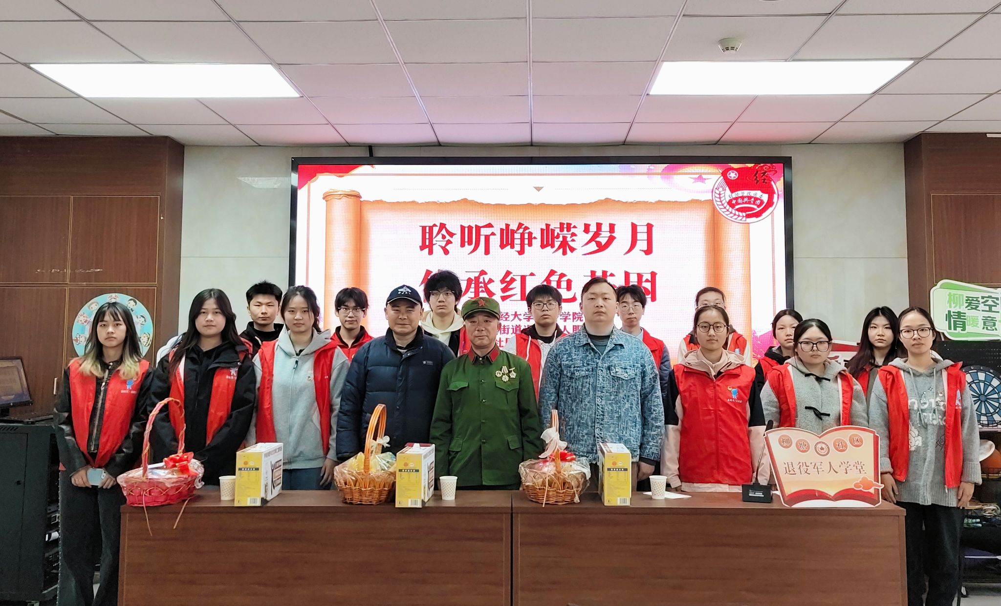 团委学生代表高企贤在发言中强调,学院始终将红色教育作为青年政治骨干培养的重要抓手,引导青年学子在实践中厚植家国情怀,将爱国之志转化为报国之行。随后,三位退役军人以亲身经历为学员们上了一堂生动的爱国主义教育课。退役军人王十周回顾部队后勤保障的艰辛,诠释“后方亦是战场”的责任担当;对越自卫反击战亲历者袁金国讲述战场上的真实故事,再现先烈保家卫国的壮烈情怀;武警战士曹赟分享从军生涯淬炼的坚韧品格,激励青年锤炼意志、勇担使命。学员们认真聆听、记录感悟,并以志愿服务践行初心,分组对社区公共区域进行全面清洁,从道路清扫到垃圾分类,以实际行动展现新时代青年的责任担当,赢得居民一致赞誉。