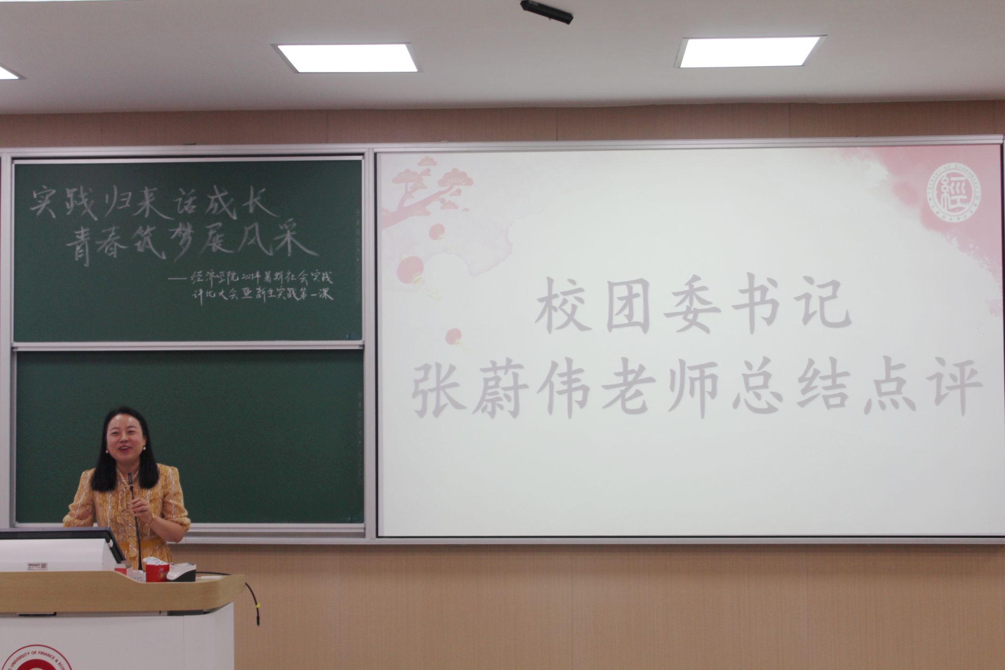 于博观楼202教室成功举办"实践归来话成长,青春筑梦展风采"暑期社会实践评比大会暨新生实践第一课。校团委书记张蔚伟老师、花都影视