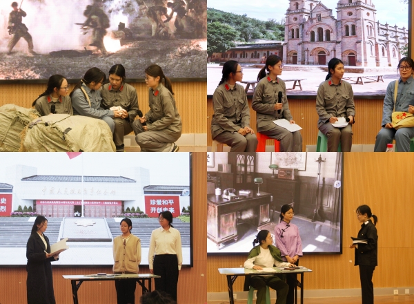 2024级本科生辅导员张闻老师作总结发言。他充分肯定本次演出的呈现效果,并赞扬学员们通过声情并茂的表演让抗战文物“活”起来,生动展现了抗战先辈的忠诚品格与使命担当。同时,张老师勉励同学们从英雄事迹中汲取精神力量,将感悟内化于心、外化于行,在新时代新征程中砥砺初心,肩负起传承红色血脉的时代责任。