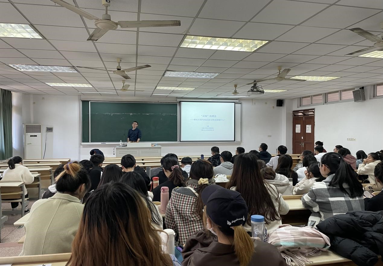 马超副教授首先以医疗价格高低与人们使用医疗服务关系的具体事例作为切入点来讲述实证过程,并以顺序流程图直观介绍了论文中做实证的过程。此后,他用生活中的实例来进行通俗易懂的阐述,引入了“识别”的理念,将假说不断放松,详细介绍了五种调研识别策略,最后提出“所有的实证研究都落在假设上”的观点。在互动环节,研究生们针对讲座提到的相关学术问题进行了提问,马超副教授都予以详细解答。讲座结束后,研究生们纷纷表示获益良多,启发很大。