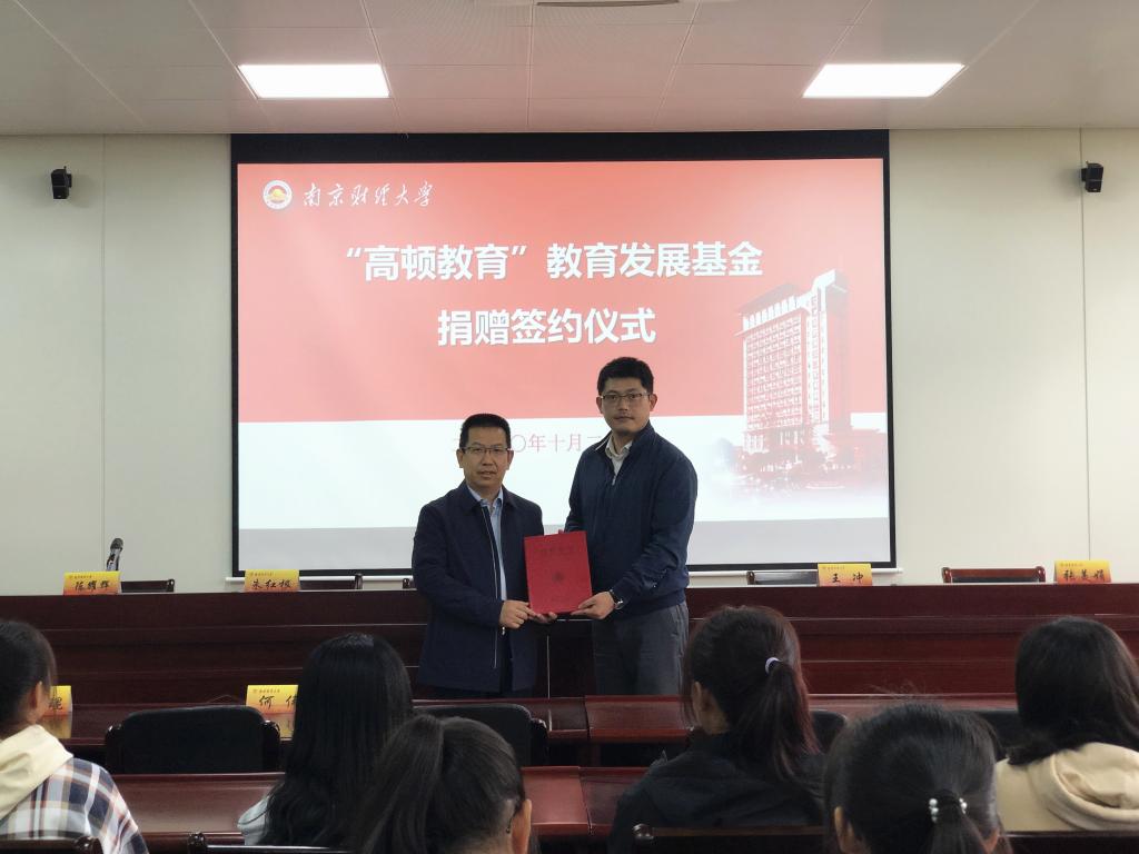 10月27日下午,“高顿教育”教育发展基金捐赠签约仪式在仙林校区德经楼307会议室举行。校党委常委、宣传部部长石奇,高顿教育集团联合创始人、副总裁王贤瀚,花都影视