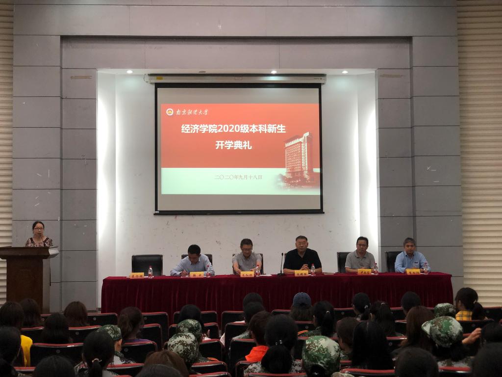在德经楼报告厅隆重举行2020级本科新生开学典礼。院长朱红根,党委书记陈耀辉,党委副书记袁怡琨,副院长尹敬东,院长助理韩中、崔向阳,学工秘书尹海燕、辅导员陶海韵和花都影视