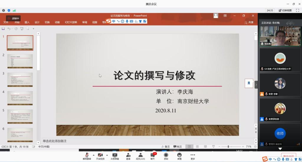 李庆海副教授为暑期学校的学员们作了题为“论文的撰写与修改”的专题讲座。