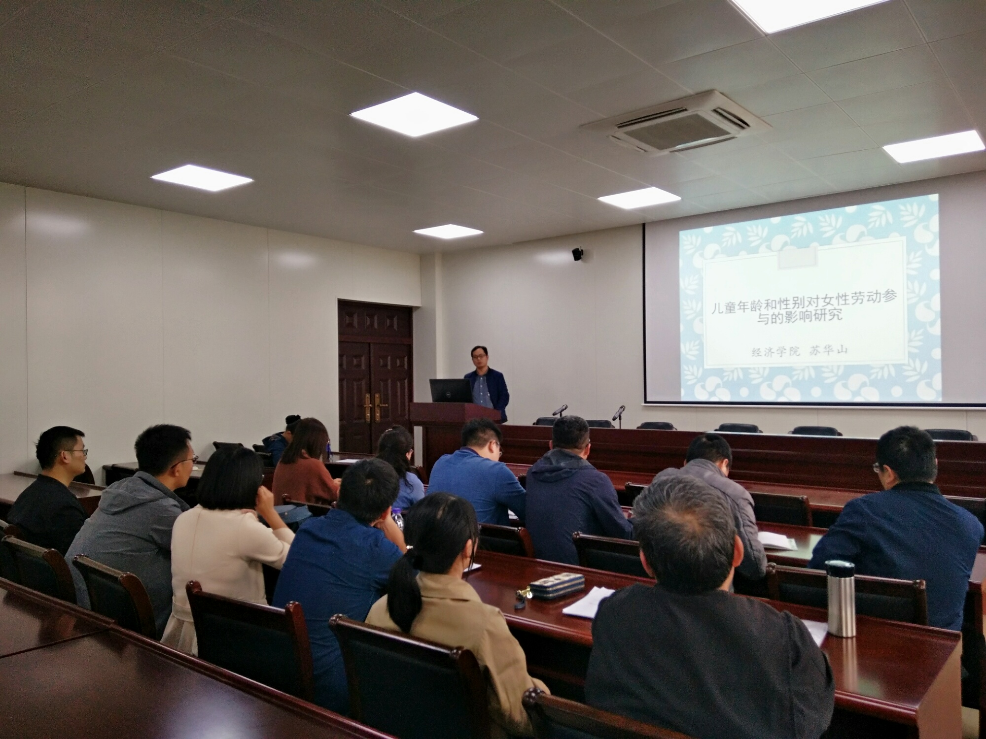 双周学术论坛第9次报告在德经楼307会议室举行。本次报告由苏华山副教授主讲,报告的主题是“儿童年龄和性别对女性劳动参与的影响研究”。本次论坛由花都影视