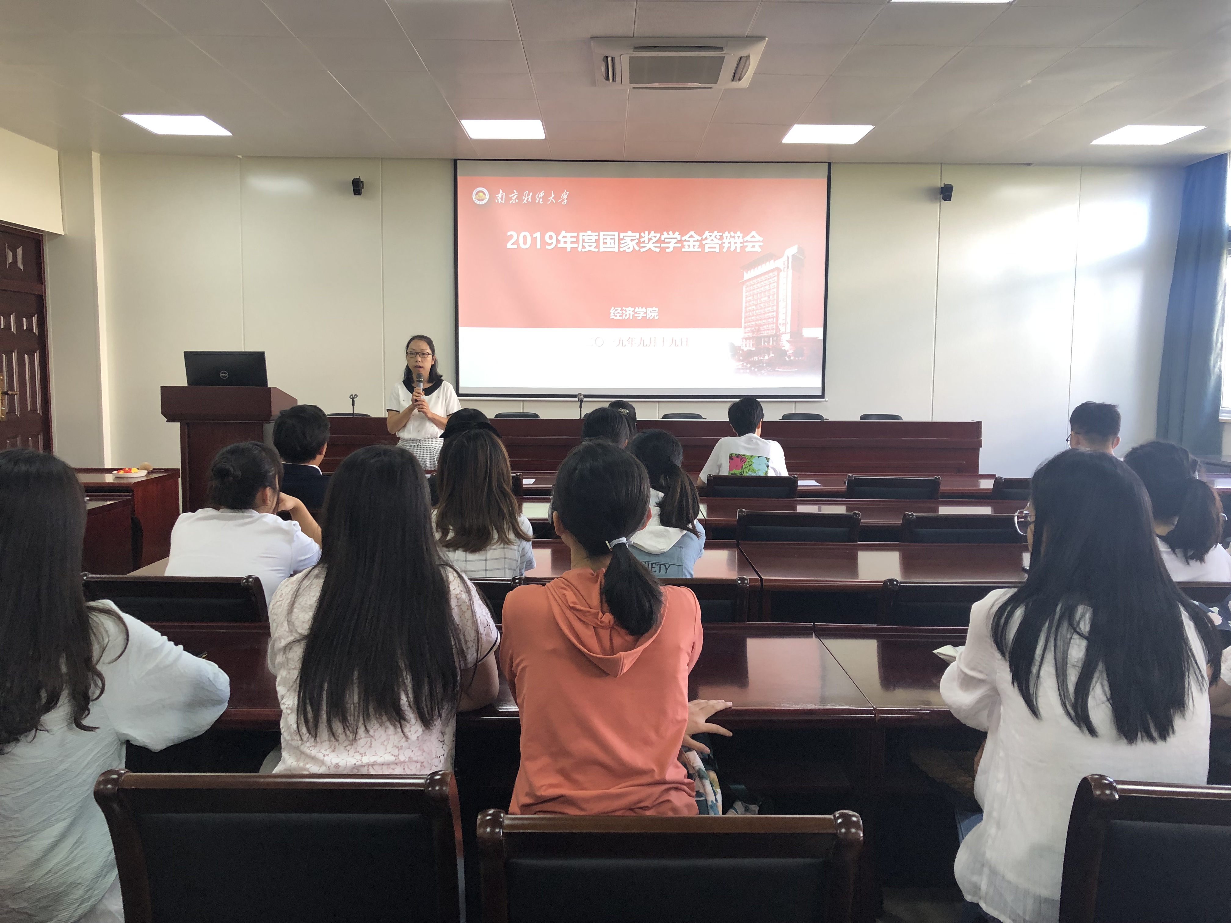 在德经楼307会议室举行2019年度国家奖学金答辩会。院党委副书记袁怡琨、学工办主任尹海燕和辅导员代表廖瑛、陶海韵担任答辩评审委员。