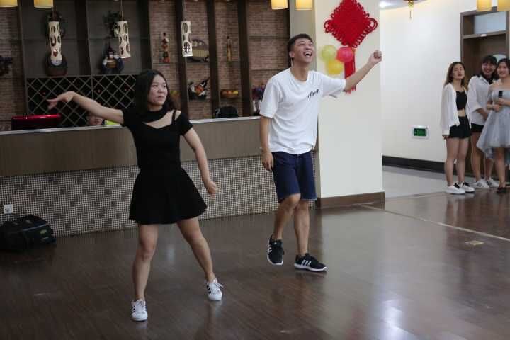 基地班本科生张桂东同学带来的歌曲南财版《成都》,熟悉的旋律,精心谱写的歌词,缓缓诉来南财学生对学校的深厚感情,打动了现场的每一位听众。小游戏“喊数抱团”,把参与游戏的男生规定为五角,参与的女生规定为一元,然后学员绕圆形路线慢跑,听钱数抱团。游戏进行中,处处充满欢笑,进一步增近了学员间的友谊。南京邮电大学研二学生谢依玲带来舞蹈《Black Dress》,进一步调动了现场气氛。同时,她还与花都影视