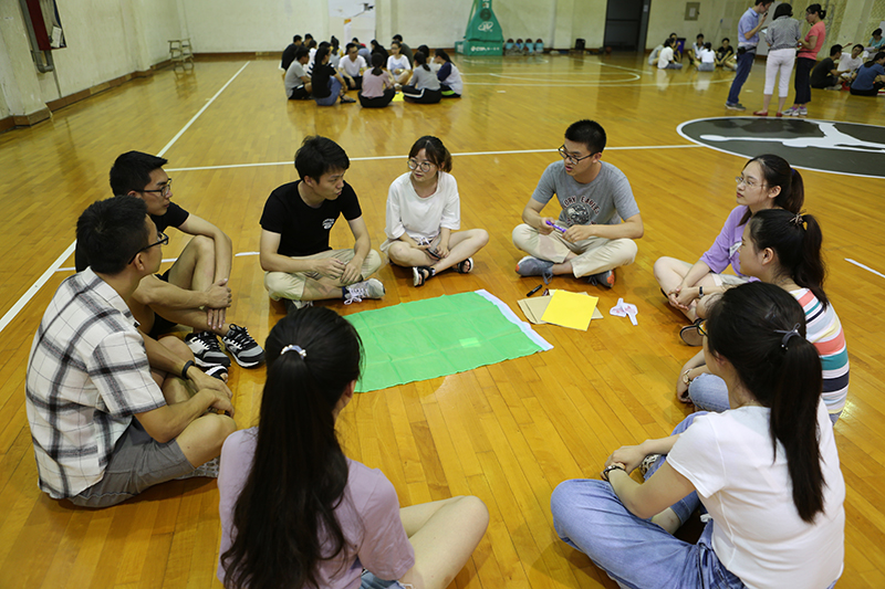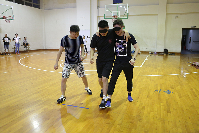 此次素拓课程在第一项活动“经领拳王赛”中拉开帷幕。第一环节“We are family”中,学员们按照分组,在十分钟之内创作队旗、口号并展示造型;第二环节“一箭穿心”,由各队队员用吸管传递皮筋,旨在提升小组成员间合作默契程度;第三环节“盲行障碍赛”要求各队队员在指挥员的指导之下佩戴眼罩依次完成夹气球、绑腿跑、跳绳与投篮项目,以提升团队合作能力;第四环节“同心圆”,全体成员围成一个圈,共同抓紧一条麻绳,各队派一名队员在两名队友的搀扶和保护下在绳上行走,比赛行进速度。最后,此次素拓课程在学员们的心得分享中结束。学员们对此次活动的主办方花都影视