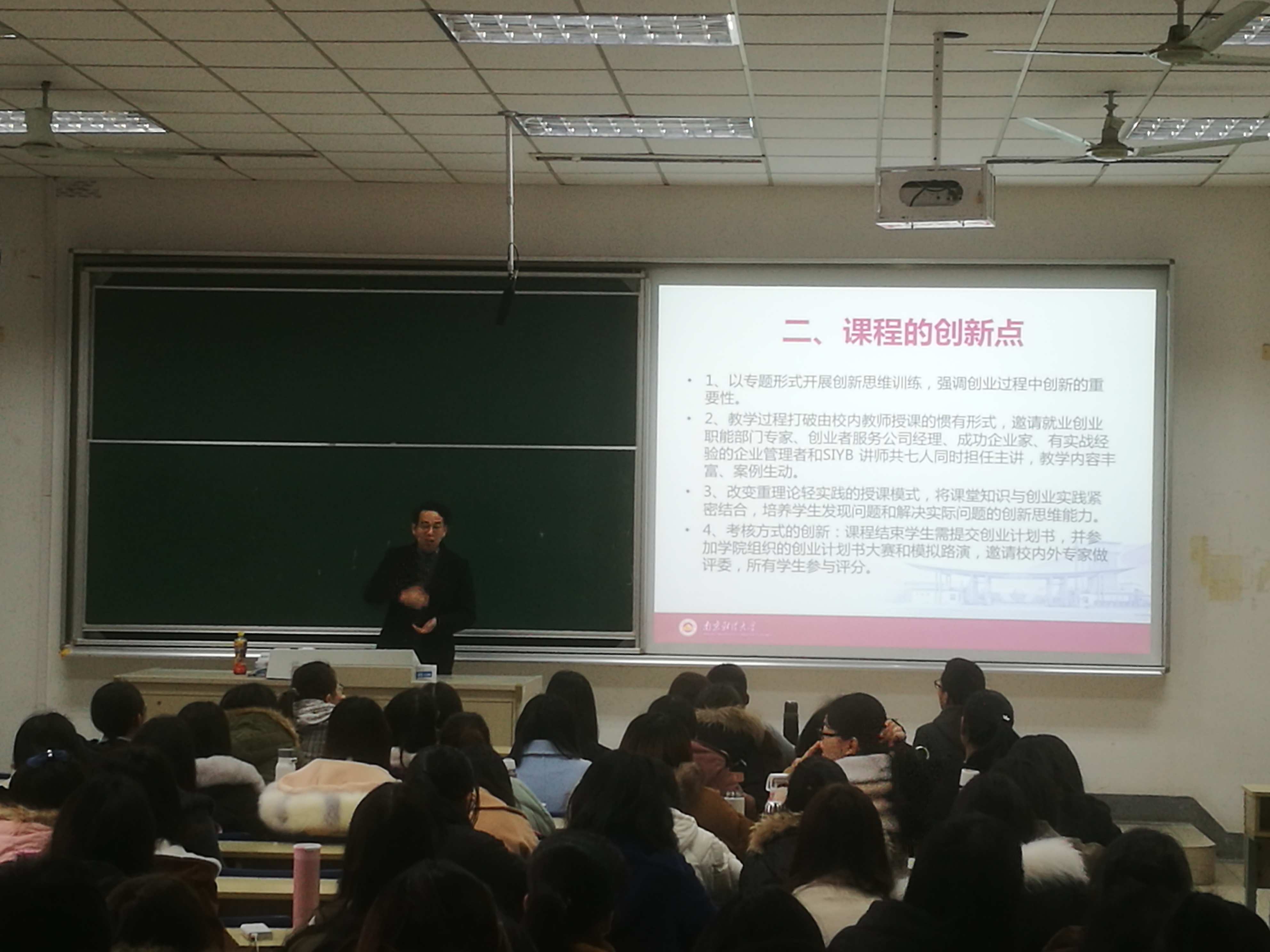 2018年度“大学生创新创业”系列讲座的第一讲,为进一步促进大学生创新创业教育与实践,学院制定了“创新创业实践”训练计划,后期将陆续邀请政府和企业界资深人士来校开设讲座,组织模拟创业实训和相关比赛,落实创新创业教育目标。
