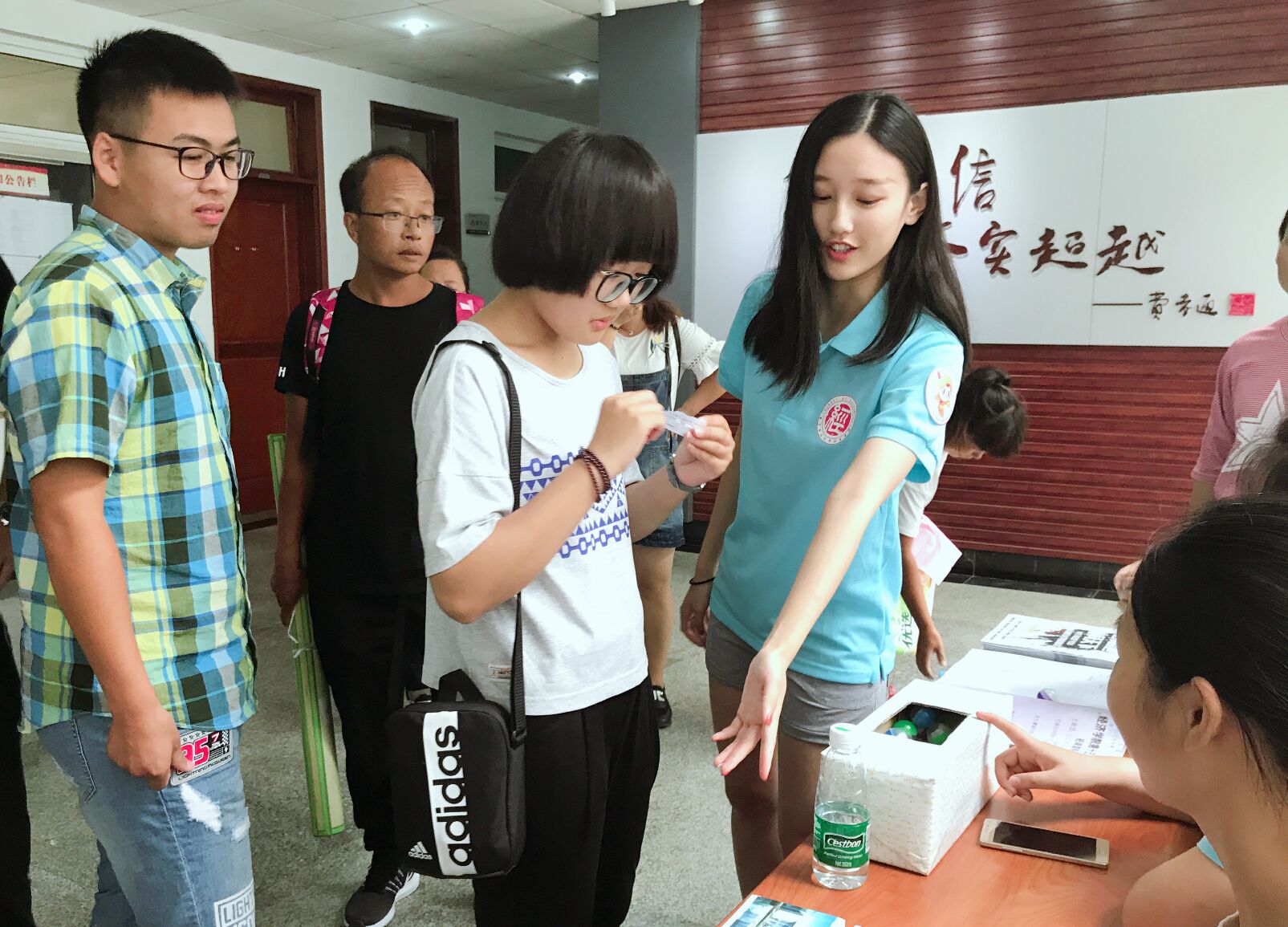 老师和志愿者们通力合作,以饱满的热情迎接新生和家长们的到来。志愿者们在引导新生报到的途中,帮助新生和家长提行李、拿包裹,为新生介绍校园环境、学院情况以及学习经验。
