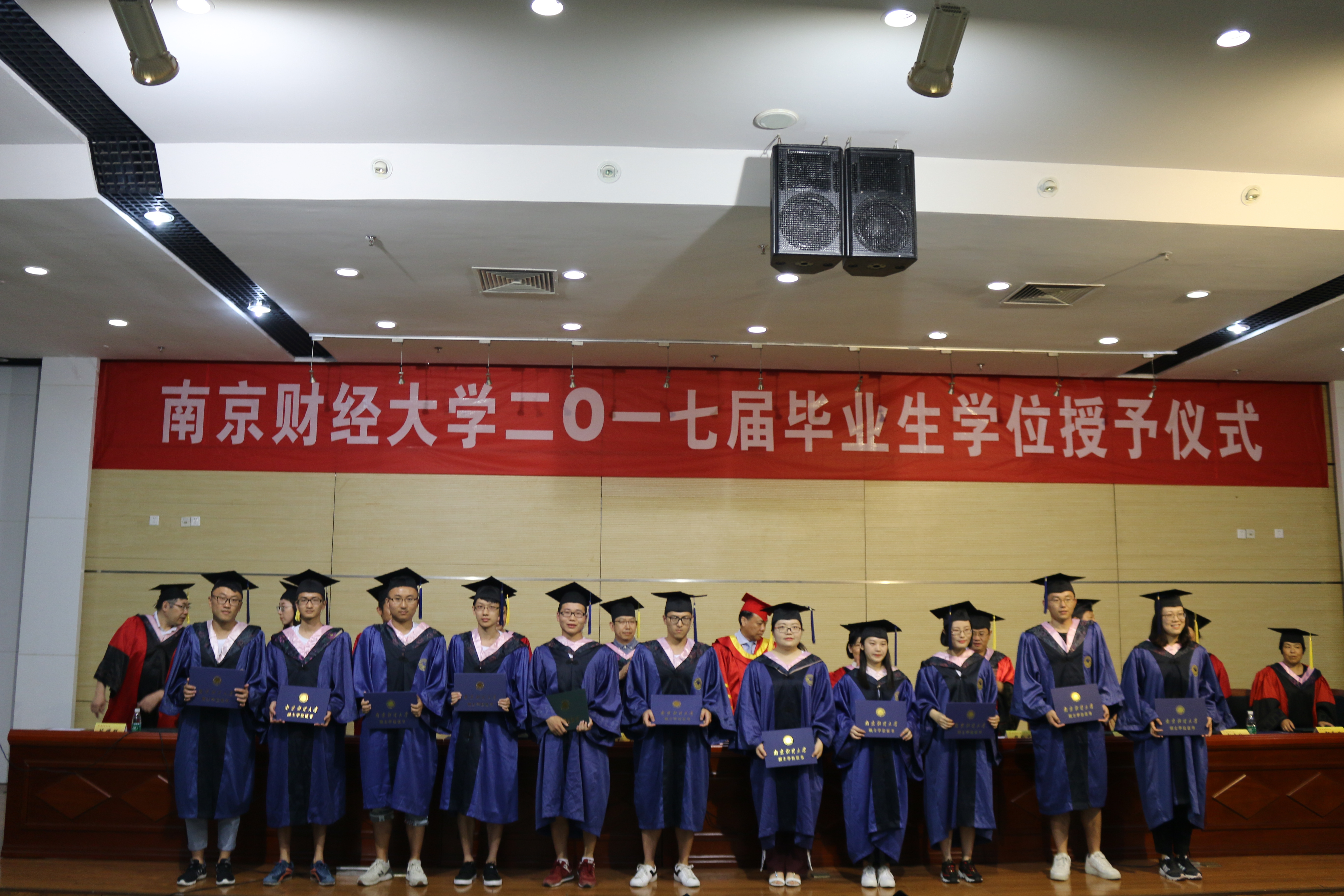随后,尹敬东副院长宣读了《关于授予2017届毕业生硕士学位的决定》和《关于授予2017届毕业生学士学位的决定》。在明快的音乐中,2017届毕业生们依次上台。与会领导和老师们与毕业生们热情握手,为毕业生拨正流苏、颁发硕士学位证书和学士学位证书。