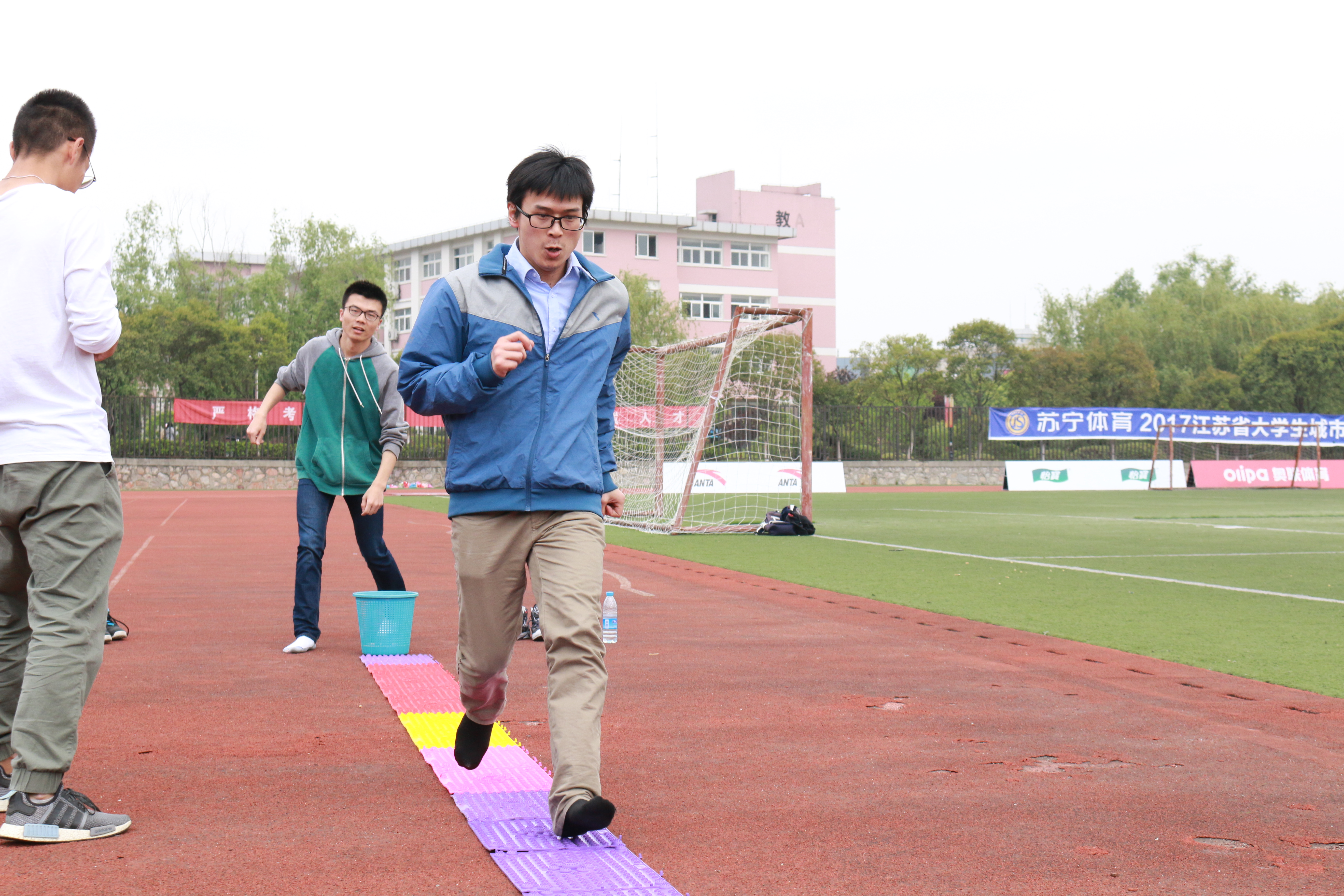 本次趣味运动会共设7个比赛项目:抛绣球、穿衣夹球接力、两人三足、袋鼠跳、背向拉绳运球、跳小绳、跳长绳。前六个项目都是师生双人合作项目,因此师生默契配合才是制胜法宝。比赛过程中,各参赛团队团结协作、共同拼搏,现场叫好频频、气氛友好热烈。最后的师生长绳比拼将运动会推向一个高潮:学生团队与教师团队同场竞技三分钟跳长绳,一时间,加油声、喝彩声、笑声贯穿整个操场。最后,教师团队以五个之差的微弱劣势,败给学生团队。老师们纷纷表示要向同学们多学习,以后加强锻炼,等到明年再战。