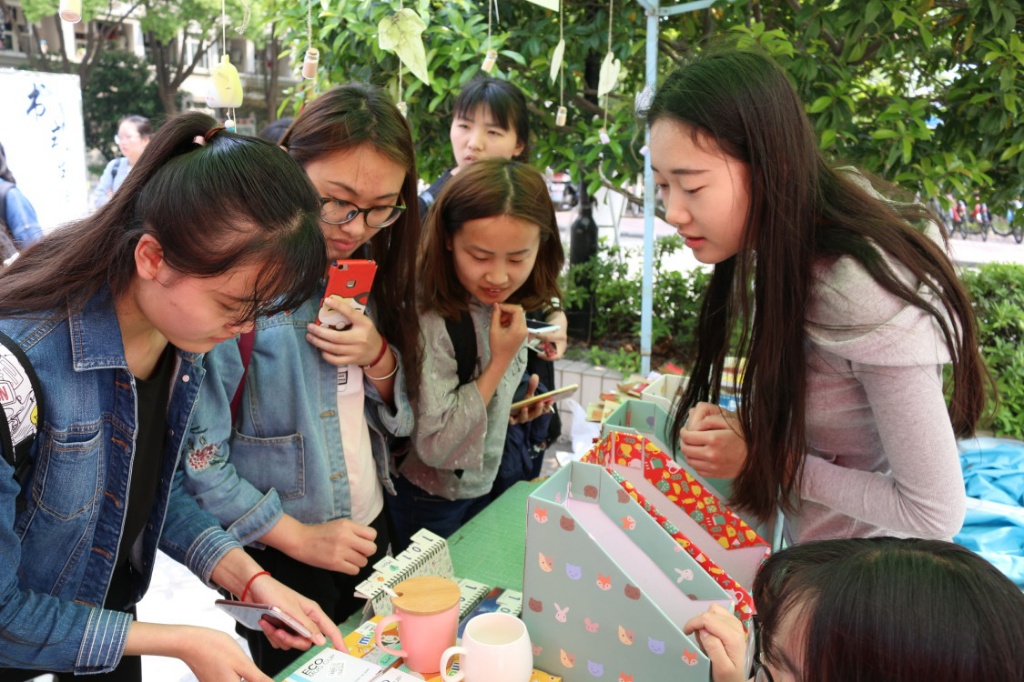 4月20日中午,中苑食堂前的“易书小屋”排起了长龙,在井然有序的队伍里,大家互相翻阅着对方手中书籍谈笑风生,这是花都影视