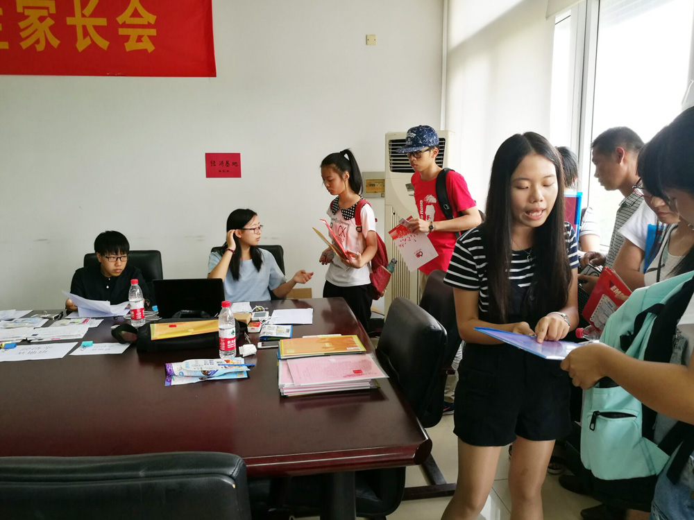 迎来了近三百名朝气蓬勃的学子。早上七点,老师和志愿者们均已准备就绪,以饱满的热情迎接新同学和家长们。各部门分工明确,各司其职,整个过程有条不紊地进行着。