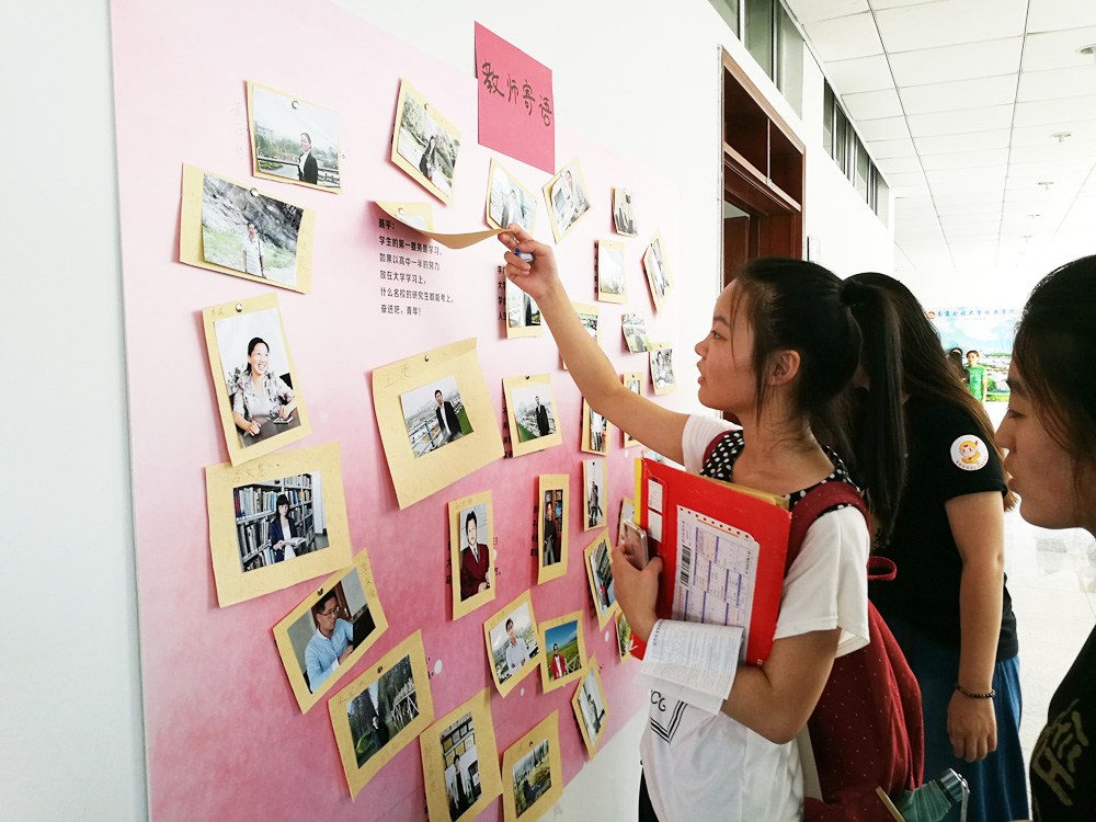 迎新工作中最别出心裁的是便是“最”礼物派送和教师寄语墙了。其中“最”礼物系列活动是学院通过系统数据挑选出了十多名“特殊”的同学:“离家最远”的新生、“年龄最小”的新生、“最学霸”新生等,并为他们准备了精美的礼物。教师寄语墙上贴满了老师们的照片,新生们翻阅照片就可以看到老师对他们的寄语:“再难也要坚持,再差也要自信,美丽人生从今天开始。”“希望同学们从今天开始,独立自主,自我管理,开启新的生活。”……这些寄语表达了老师对同学们的殷切的期盼和美好祝福。