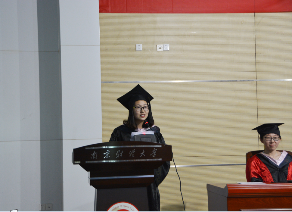 高分考取上海财经大学硕士研究生的经济1201班刘爽同学作为优秀毕业生代表发言,她回忆了四年在校的点点滴滴,表达了对母校、对老师、对同学的感恩感激感谢之情,并鼓励全体2016届毕业生不断拼搏,努力实现自己的梦想。