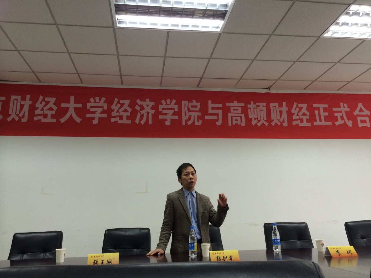 揭牌仪式后,第一次实训课程项目开展,来自高顿财经的资深讲师郭剑光博士以“大学生财经职业生涯规划”为主题进行讲座。他从当前社会就业环境切入,有针对性地跟同学们交流了“你想做什么样的工作”、“你喜欢做什么工作”、“别人需要你做什么工作”和“你最适合做什么工作”等问题,使在场同学更加明晰了自身定位和未来发展的方向。