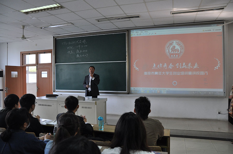 联合南京中华财经进修学院、育仕创业职业培训学校共同开展了大学生创业宣讲校园行活动。