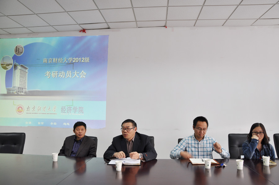 在经济学科楼307会议室召开2016届考研动员会。本次动员会邀请了副院长陈耀辉教授、副院长叶林祥副教授,以及王庚教授和王万珺老师。领导老师们就考研形势、专业特点以及各自的经验与同学们进行面对面交流。