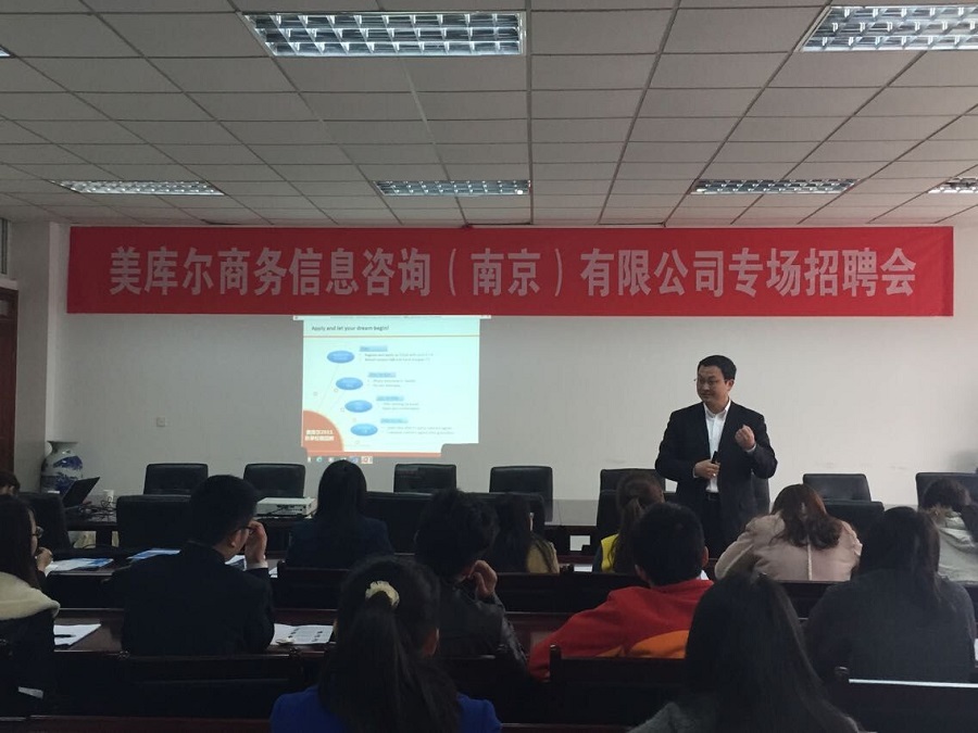 3月26日下午,美库尔商务信息咨询(南京)有限公司校园宣讲会暨专场招聘会在花都影视
