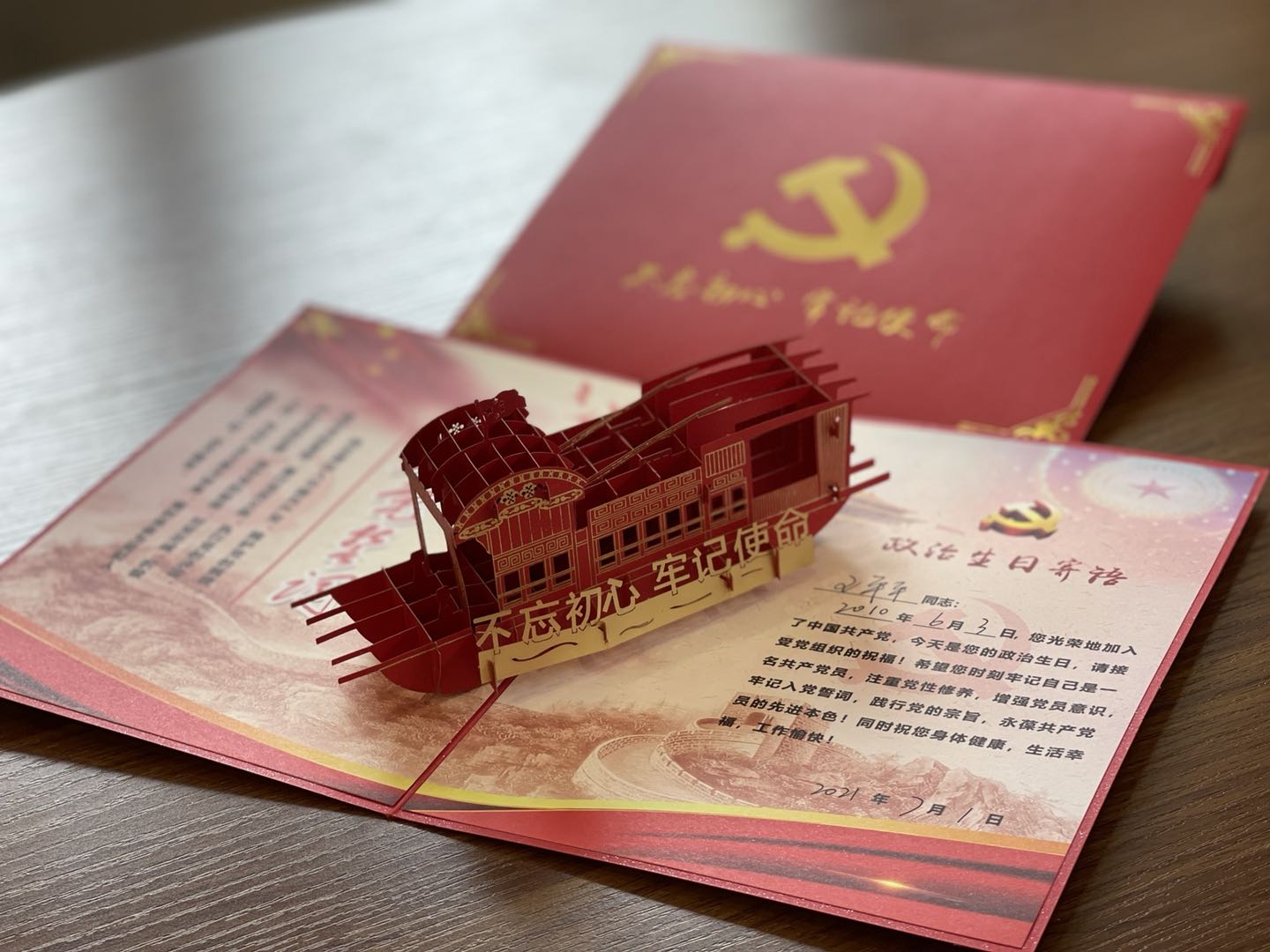 党委书记陈耀辉同志向过政治生日的同志赠送贺卡与勉励。陈书记肯定了本次活动的意义,并激励大家把党史学习与业务工作紧密结合,拧成一股绳,将艰苦奋斗的精神投入到学科建设、专业建设和自身的教学和科研工作中,推动思想再解放、目标再攀升、改革再深入、工作再落实,以优异成绩迎接建党100周年,以更加饱满的工作热情、“争当表率、争做示范、走在前列”的使命担当、奋力谱写高质量发展的新篇章。
