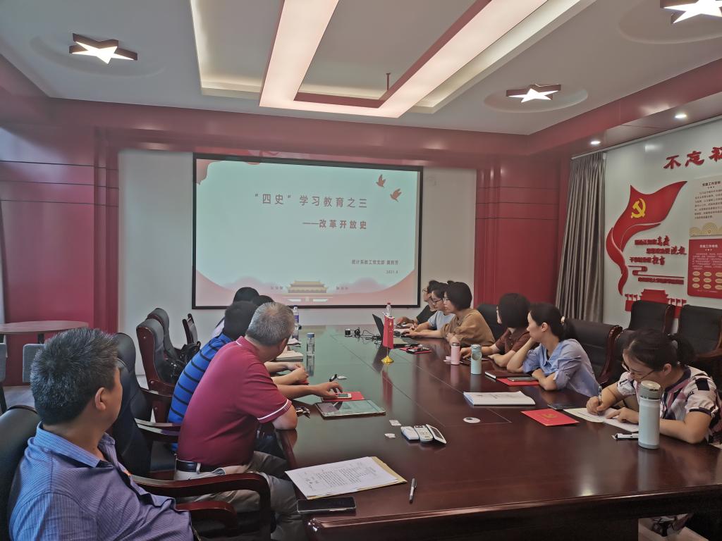 统计系教工党支部,在德经楼329支部书记工作室开展“过政治生日、忆誓言初心,听党史党课”主题活动,为入党时间在每年上半年的同志集体“庆生”。活动由统计系教工党支部宣传委员武伟娜同志主持,支部全体党员参加。