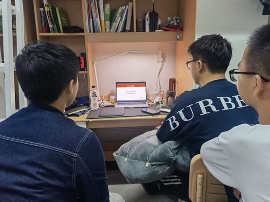 新生们在各自的宿舍认真观看直播,积极线上参与。