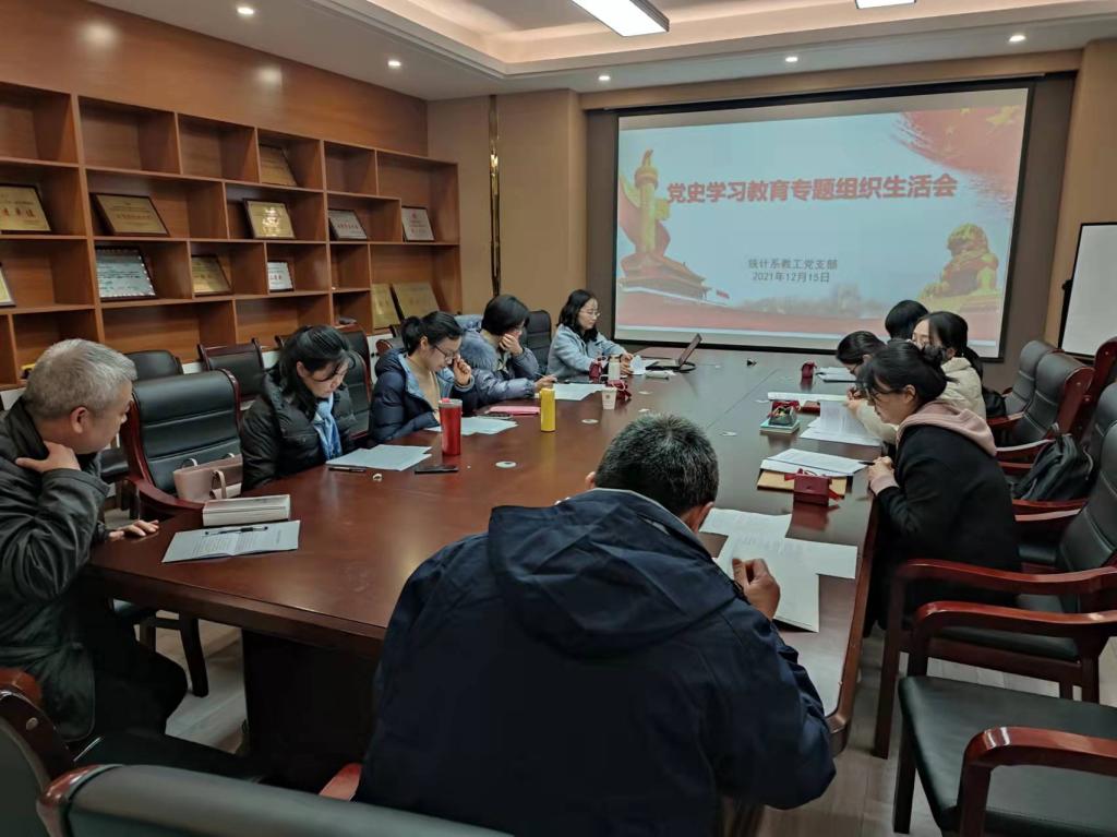 12月15日下午,统计系教工党支部在德经楼307会议室召开党史学习教育专题组织生活会。活动由支部副书记王平平同志主持,支部全体党员教师参加。